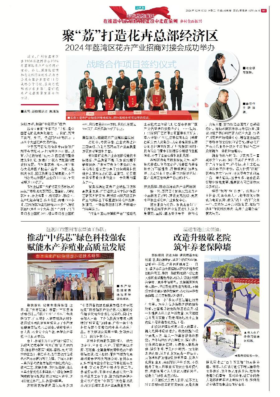 新快報訊 花地接花津,四時皆似春。12月6日,荔灣區(qū)在1906科技園舉辦2024年荔灣區(qū)花卉產(chǎn)業(yè)招商對接會。會上,荔灣區(qū)招商和農(nóng)業(yè)部門與相關(guān)花卉協(xié)會及頭部企業(yè)簽訂11份戰(zhàn)略合作協(xié)議,荔灣與花都兩區(qū)農(nóng)業(yè)部門簽訂花卉產(chǎn)業(yè)高質(zhì)量發(fā)展合作協(xié)議。