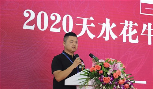 甘谷縣副縣長杜興介紹甘谷蘋果產(chǎn)業(yè)情況并進(jìn)行宣傳推介
