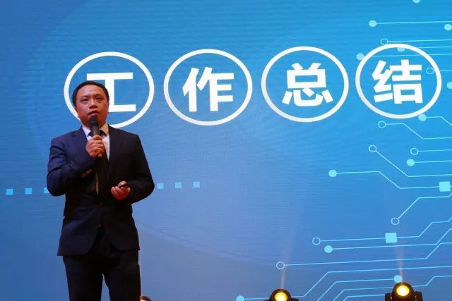 集體合唱結(jié)束后,王照云董事長信步走上舞臺,向現(xiàn)場嘉賓與鴻威全體員工進行工作匯報。
