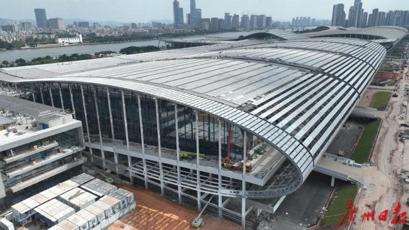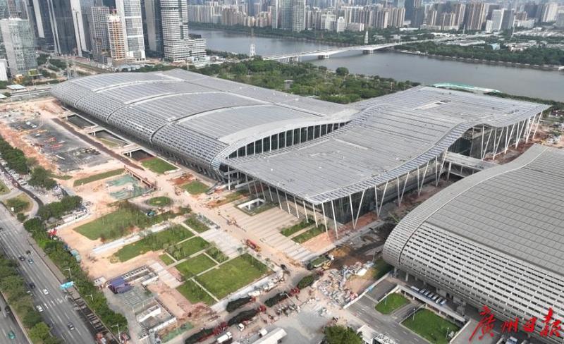 10月9日,記者從中建八局廣交會(huì)展館四期項(xiàng)目部獲悉,廣交會(huì)展館四期項(xiàng)目展廳區(qū)域?qū)⒂诮诮桓?,目前,該?xiàng)目處于整體收尾階段。