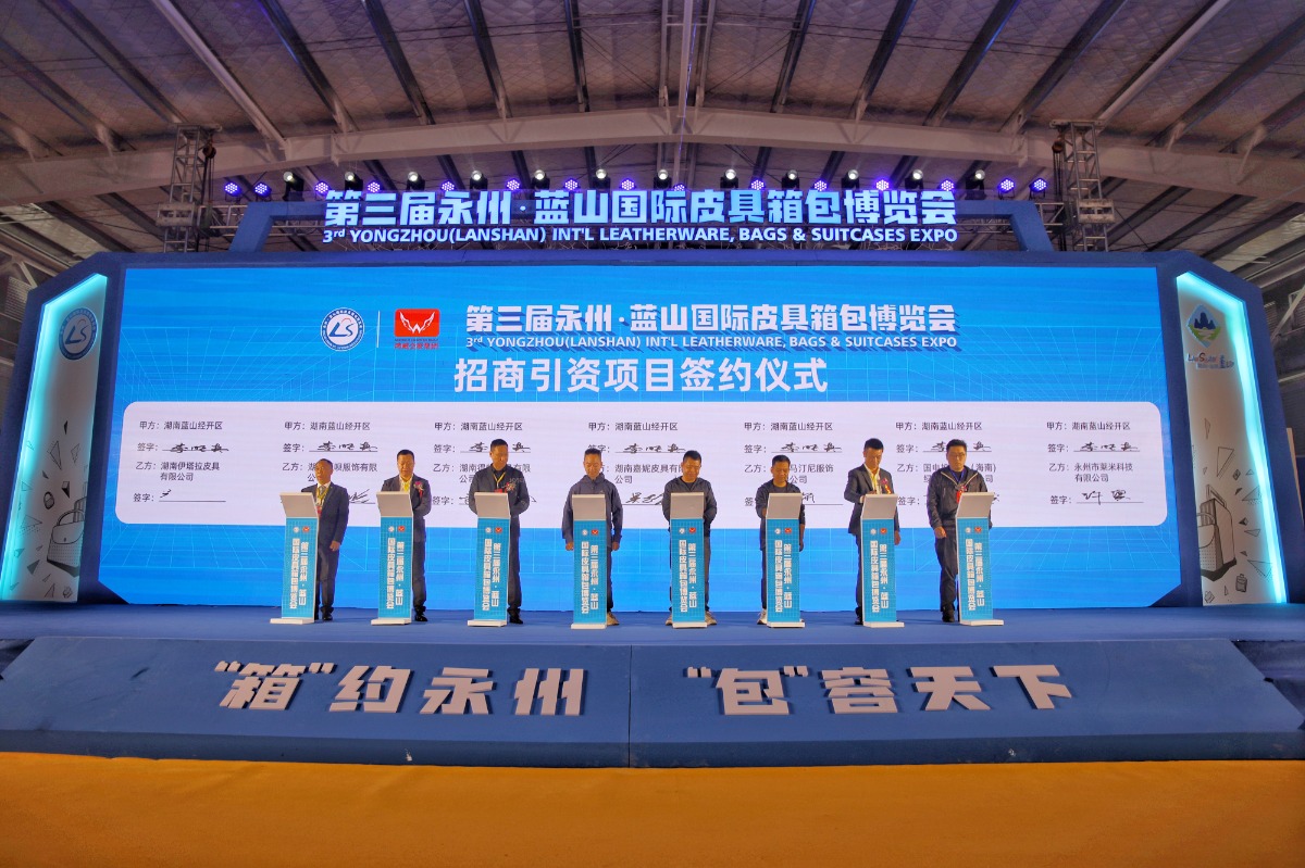 3月24日上午,第三屆永州·藍(lán)山國(guó)際皮具箱包博覽會(huì)在湖南省永州市藍(lán)山縣皮具箱包科技產(chǎn)業(yè)園創(chuàng)品國(guó)際智慧物流園拉開(kāi)帷幕。本屆博覽會(huì)以“‘箱’約永州、‘包’容天下”為主題,現(xiàn)場(chǎng)簽約招商引資項(xiàng)目14個(gè),總投資金額13億元,現(xiàn)場(chǎng)簽訂外貿(mào)訂單8單,簽約金額3.5億元人民幣。