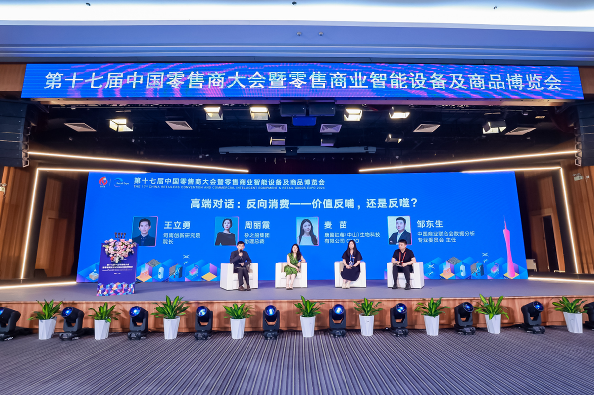 在高端對話環(huán)節(jié),司南創(chuàng)新研究院院長王立勇、砂之船集團助理總裁兼分公司總經理周麗霞、康盈紅莓(中山)生物科技有限公司CMO麥苗、中國商業(yè)聯(lián)合會數據分析專業(yè)委員會主任鄒東生就“反向消費-價值反哺,還是反噬?”這一話題進行了深入討論,為與會者提供了獨特的視角和思考。